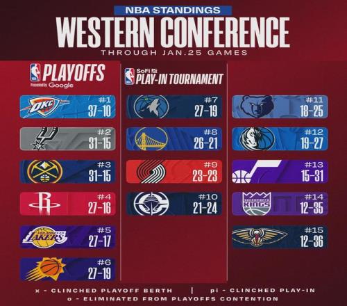 最后看看西部最新排名,距离交易截止日仅剩10天,你觉得湖人会有动作吗?
